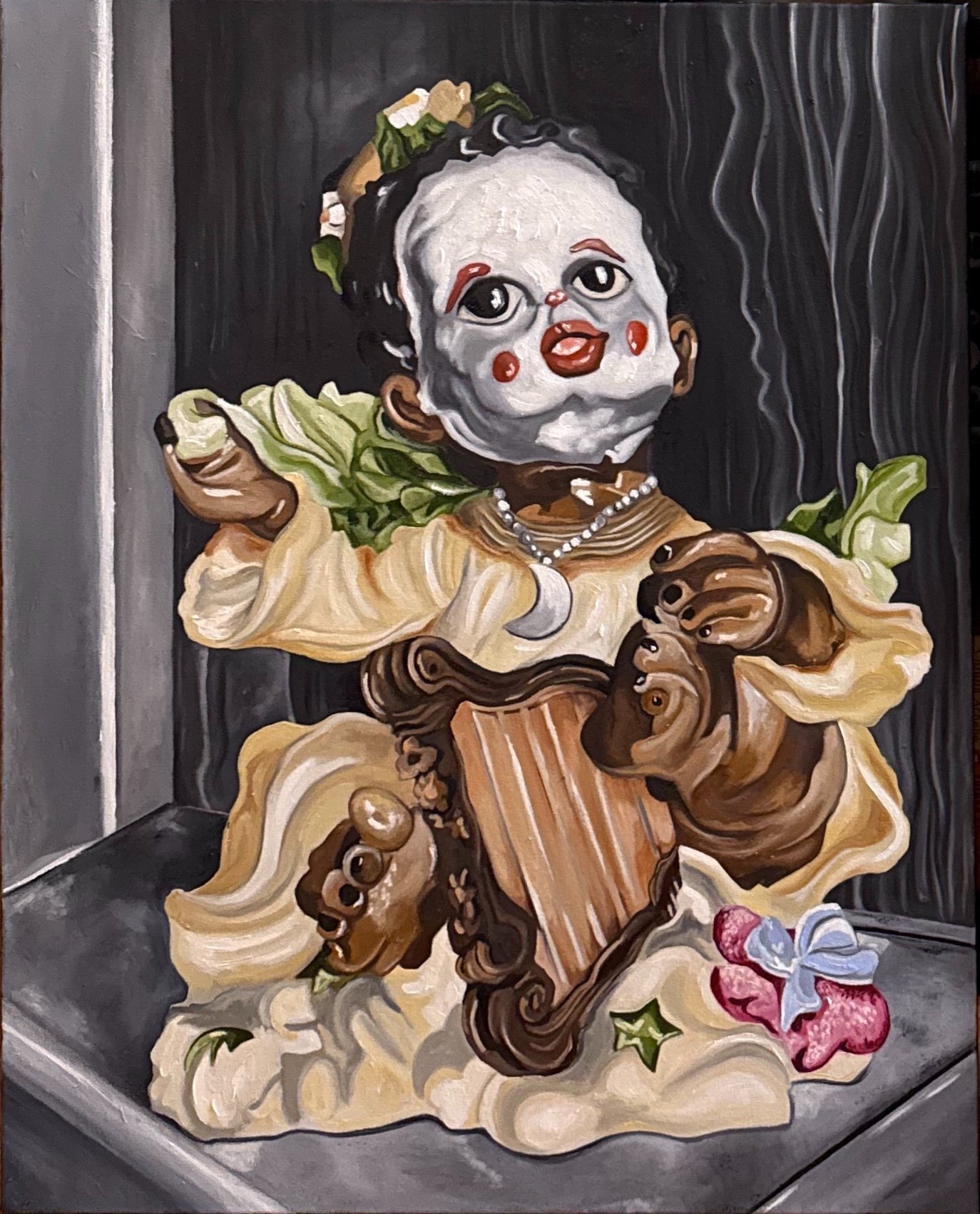 An acrylic painter, she frequently explores identity, queerness, and obsession through both abstraction and realism.