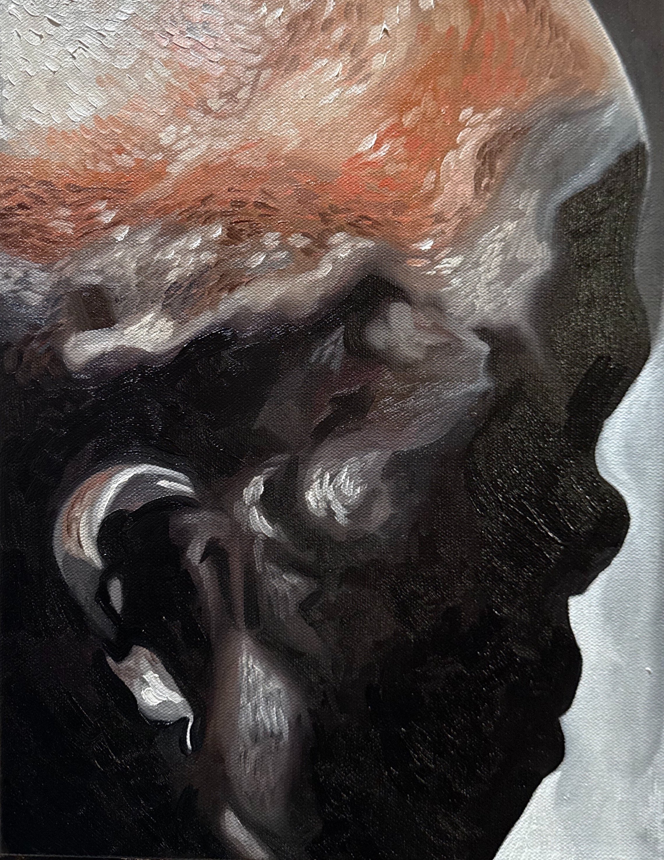 Working primarily in oil painting and printmaking, Hannah’s practice investigates the psychosocial effects of perpetual systemic harm. Her art is rooted in the complexities of diasporic identity, drawing from her Central American heritage and her family’s disconnect from their indigenous lineage. Through personal inquiry, she explores what it means to seek belonging without direct access to ancestral memory and examines the afterlives of colonialism.