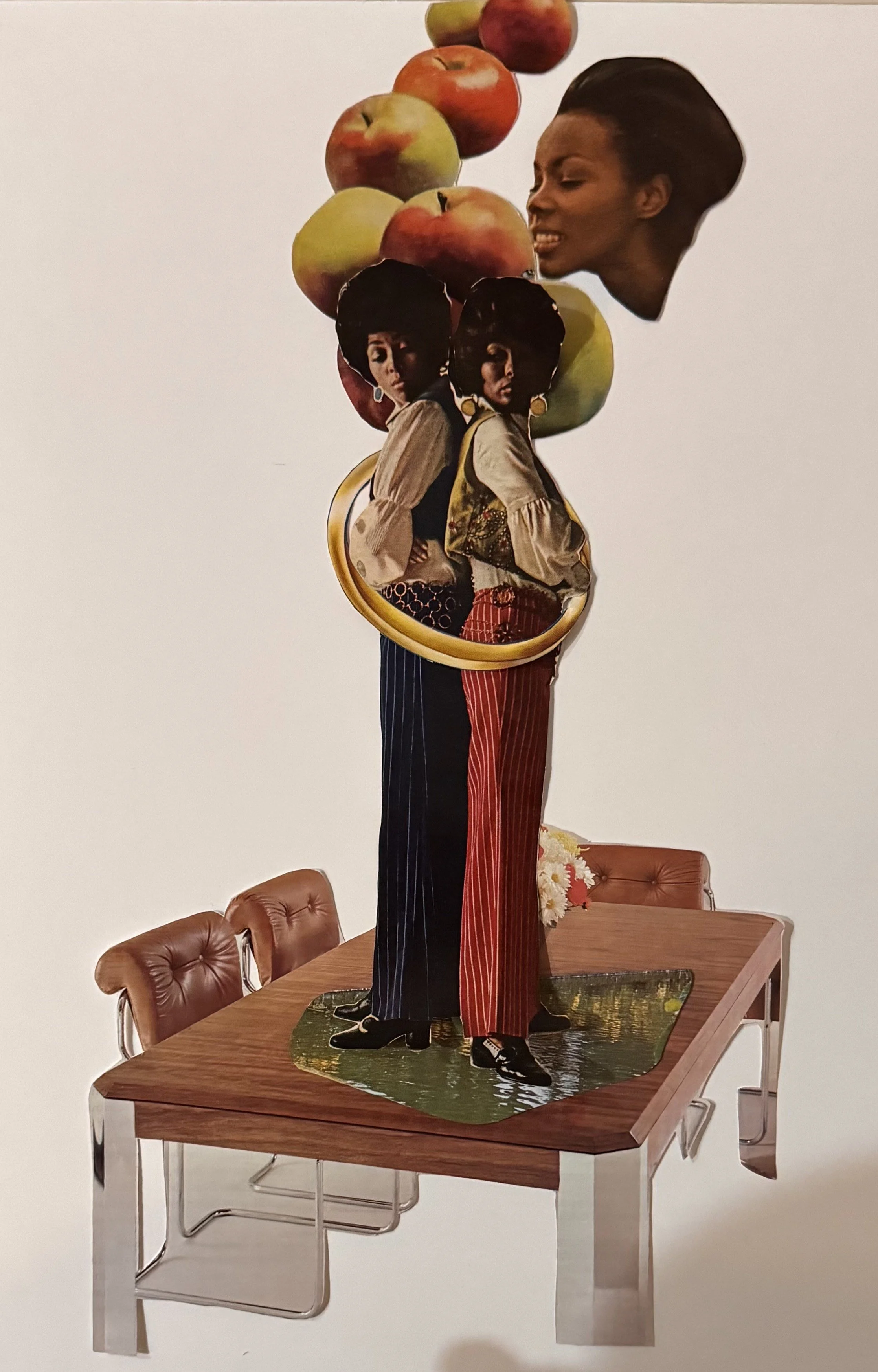 Amber Janay Cooper (she/they) is a DC-based self-taught collage artist who channels surreal Blackness-centered visions of new worlds fed by a healthy collection of ephemera, especially vintage African American magazines from the 1960s and 70s to create her work. In 2025, Amber self-published their first collection of collage works, Interophilia. Originally from Georgia, Amber also lived for some years in rural Virginia.
