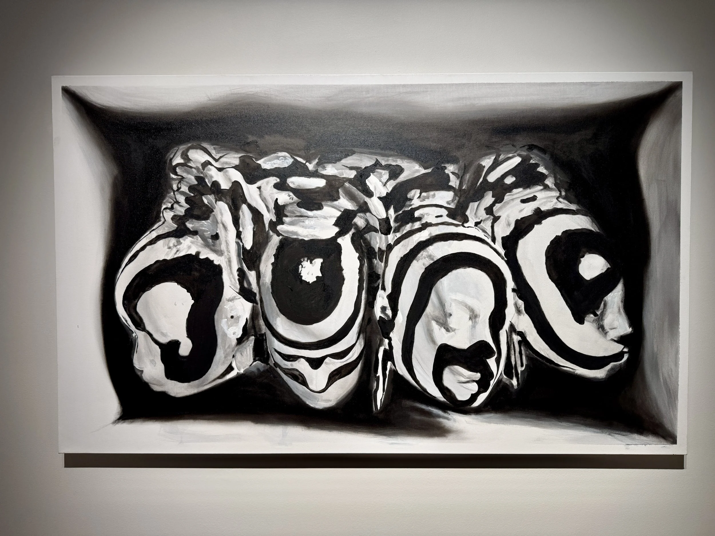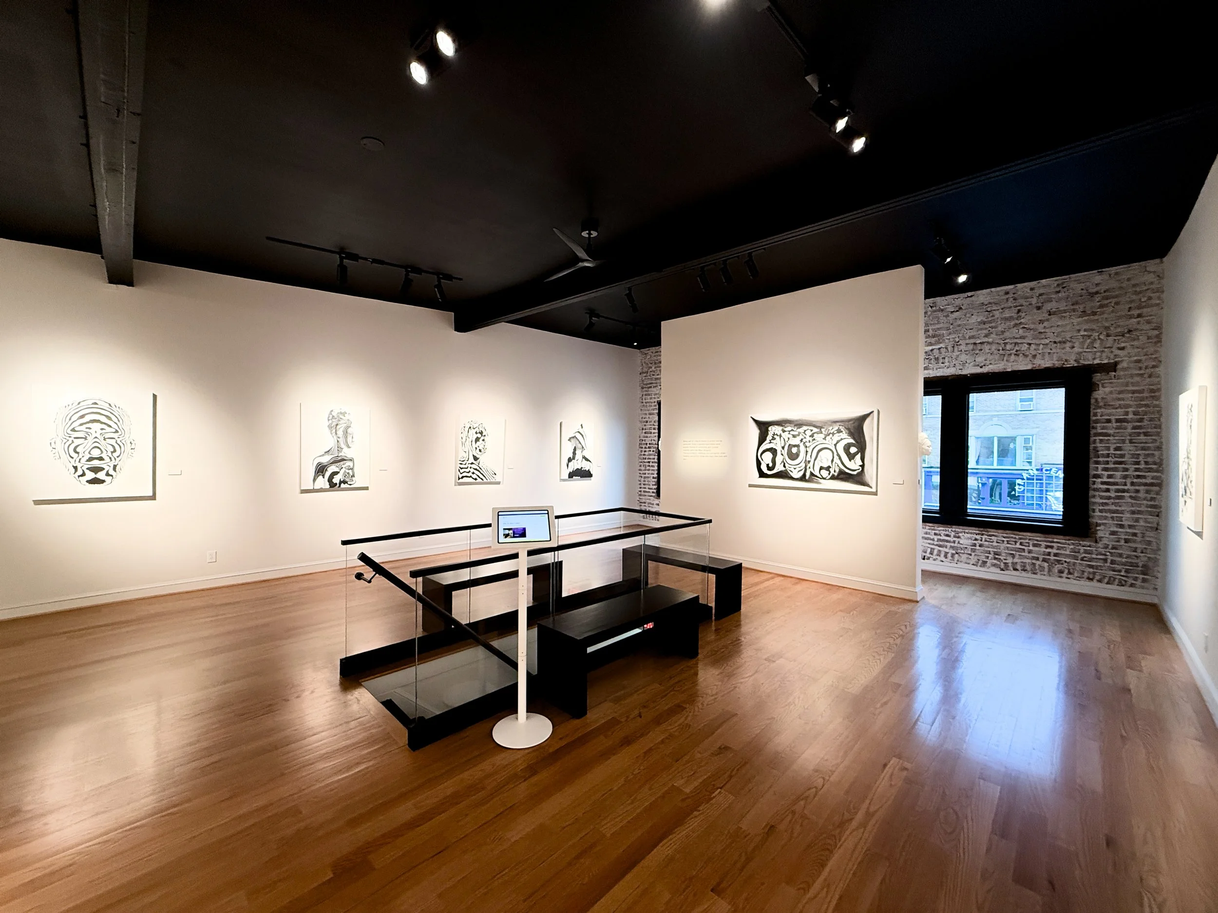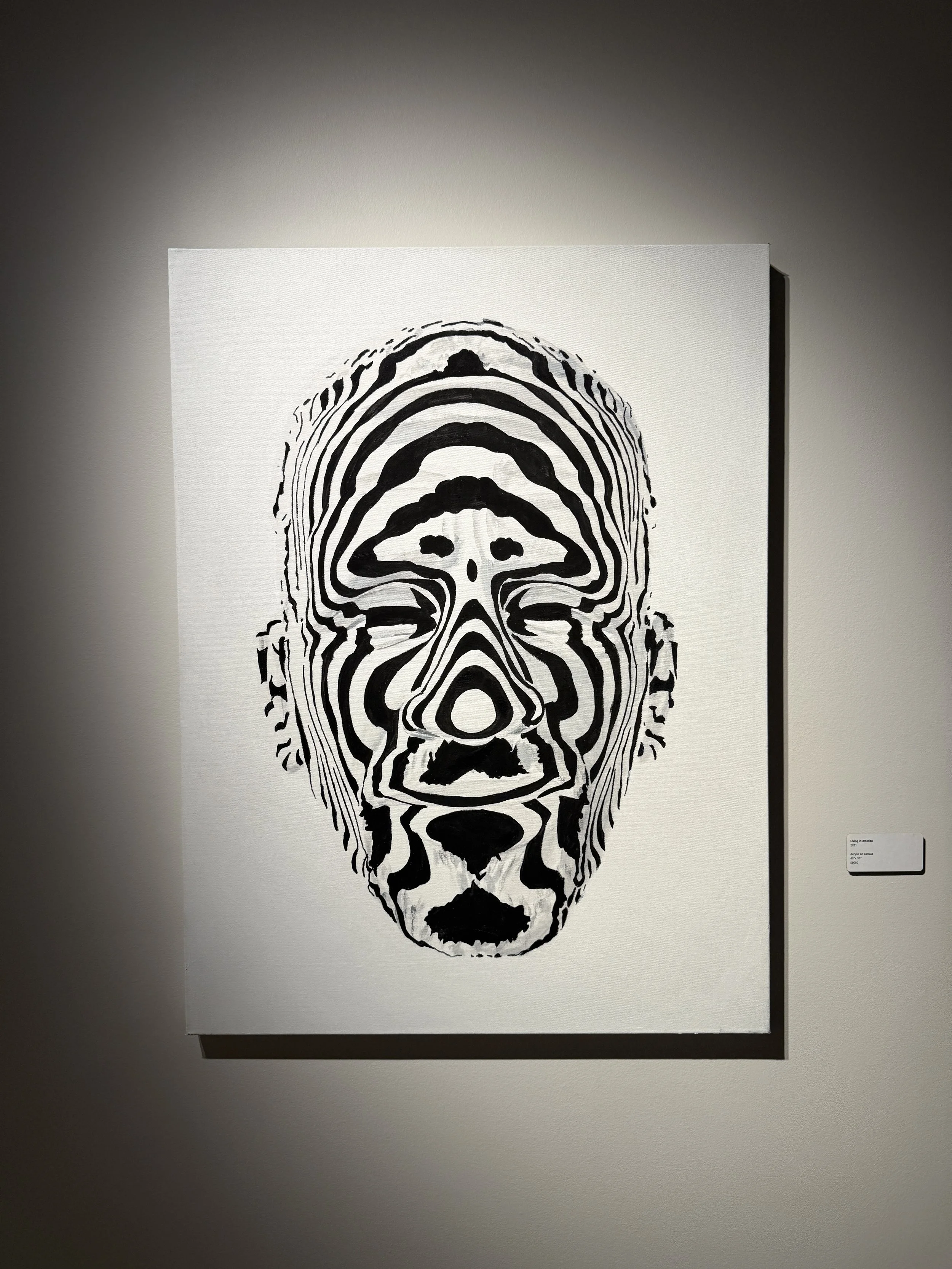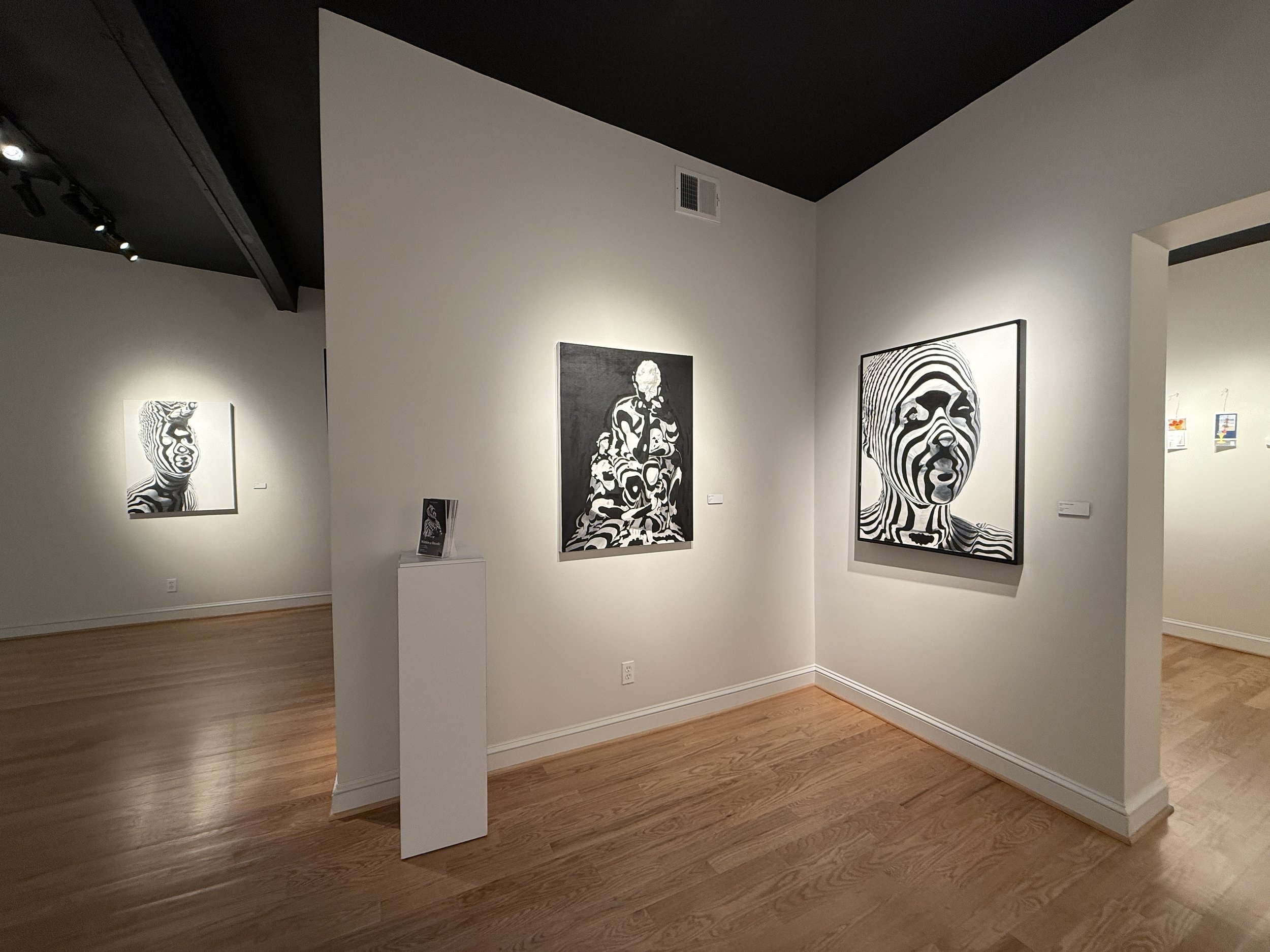 Within a Dazzle is an invitation to view Qrcky’s signature portraiture work, which is defined by black and white stripes. To challenge viewer perception, Qrcky draws inspiration from the natural coloration of zebras and WW1 marine camouflage to explore themes of community and societal visibility within the Black diaspora. Qrcky’s work creates a ground for reflection regarding the complexity of human nature by looking to the individual human identity in conjunction with relationships. Through his work, Qrcky examines relationships from a personal to a cultural or societal scale.
