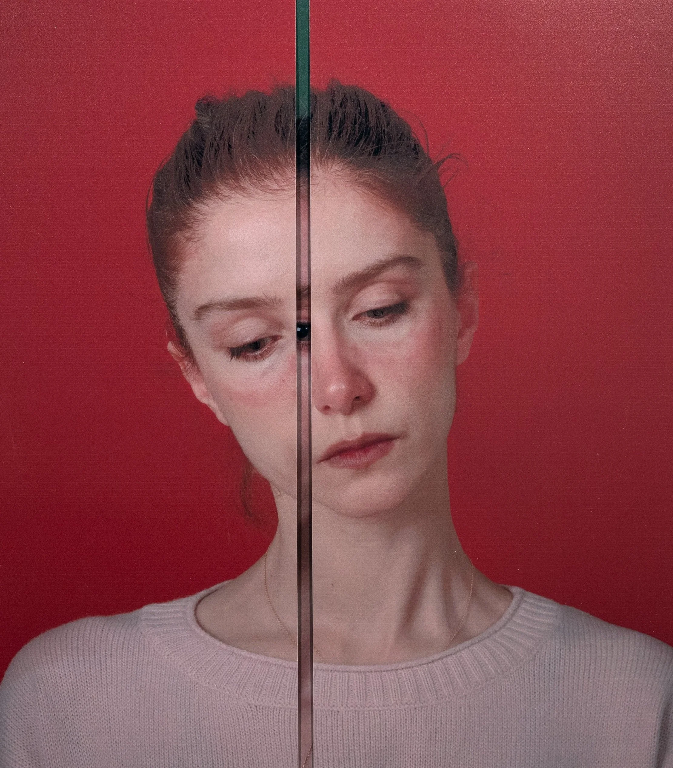 Offset (2025) considers multiplicity —the many faces and experiences hidden behind a blank look, or perhaps the dreaded infinite mirroring of a Zoom meeting gone wrong. Muzzle (2025) stifles.